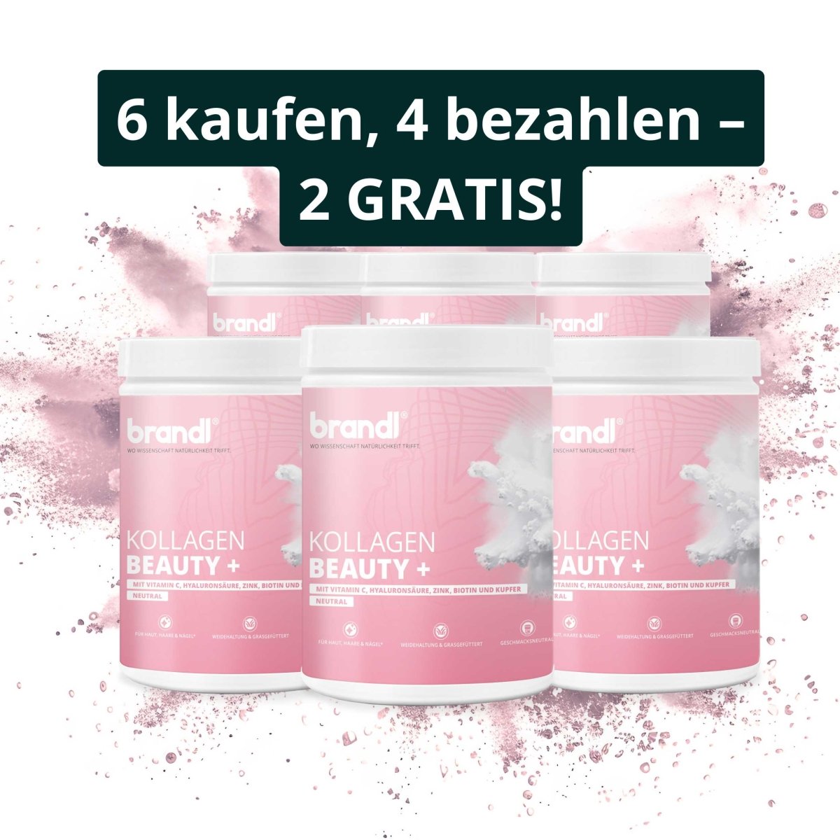 Es wird ergänzt durch Vitamin C , das zu einer normalen Kollagenbildung für eine normale Funktion der Haut beiträgt.* 2. Für Haut, Haare & Nägel Der bewährte Komplex aus Biotin und Zink trägt zur Erhaltung normaler Haut und Haare bei.* Zink unterstützt zusätzlich die Erhaltung normaler Nägel.* 3. Für dein Bindegewebe & Zellschutz Kupfer trägt zur Erhaltung von normalem Bindegewebe bei* und – gemeinsam mit Zink – dazu, die Zellen vor oxidativem Stress zu schützen.* 4. Plus Premium-Hyaluronsäure 150 mg reine Hyaluronsäure (HAPLEX®Plus) pro Portion runden die Formel ab. Qualität, die sich mühelos einfügt: Entwickelt und abgefüllt in Deutschland Geschmacksneutral & perfekt löslich 0 % Zucker, 0 % Fett Ideal für Wasser, Smoothies, Kaffee, Joghurt oder Bowls *Die genannten positiven Wirkungen beziehen sich ausschließlich auf die enthaltenen Vitamine und Mineralstoffe (Vitamin C, Zink, Biotin, Kupfer) gemäß der Verordnung (EU) Nr. 1924/2006.